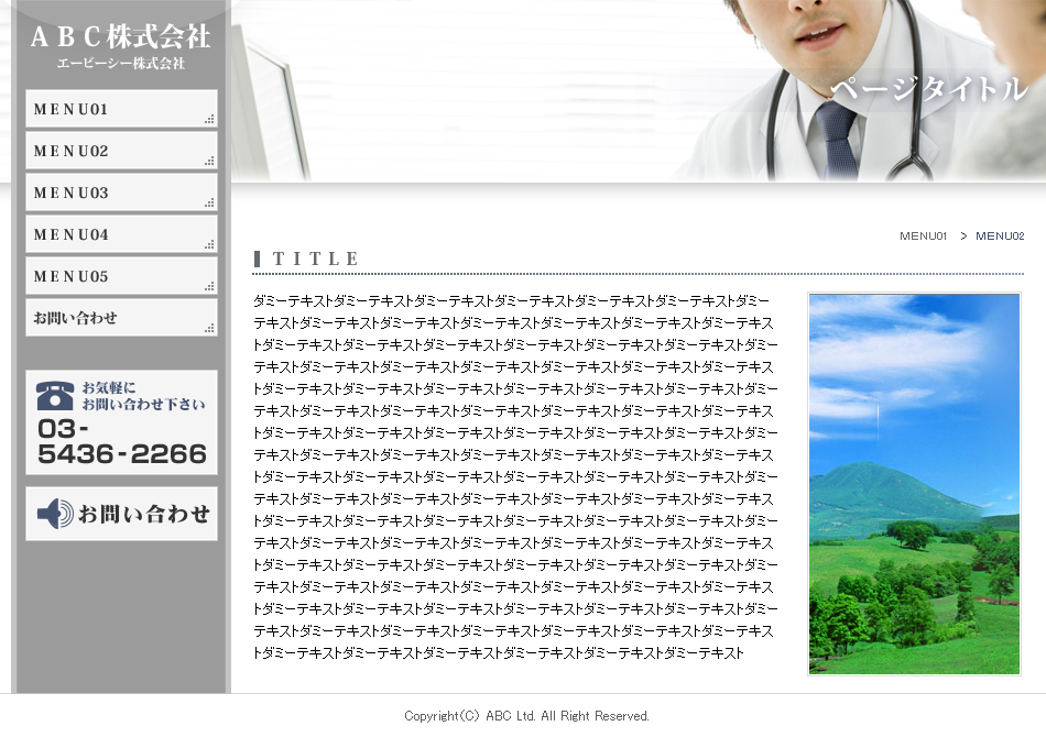 緑と森の写真を使い、爽やかで清潔感を感じられるデザインテンプレートです。